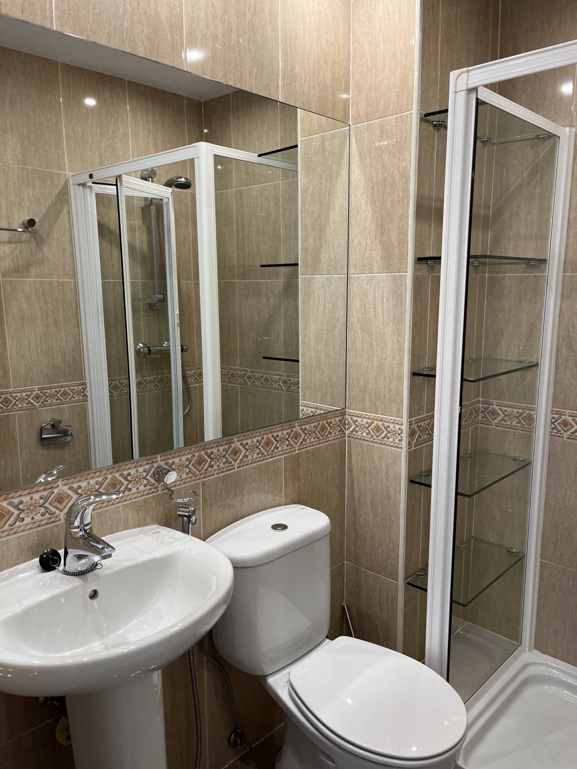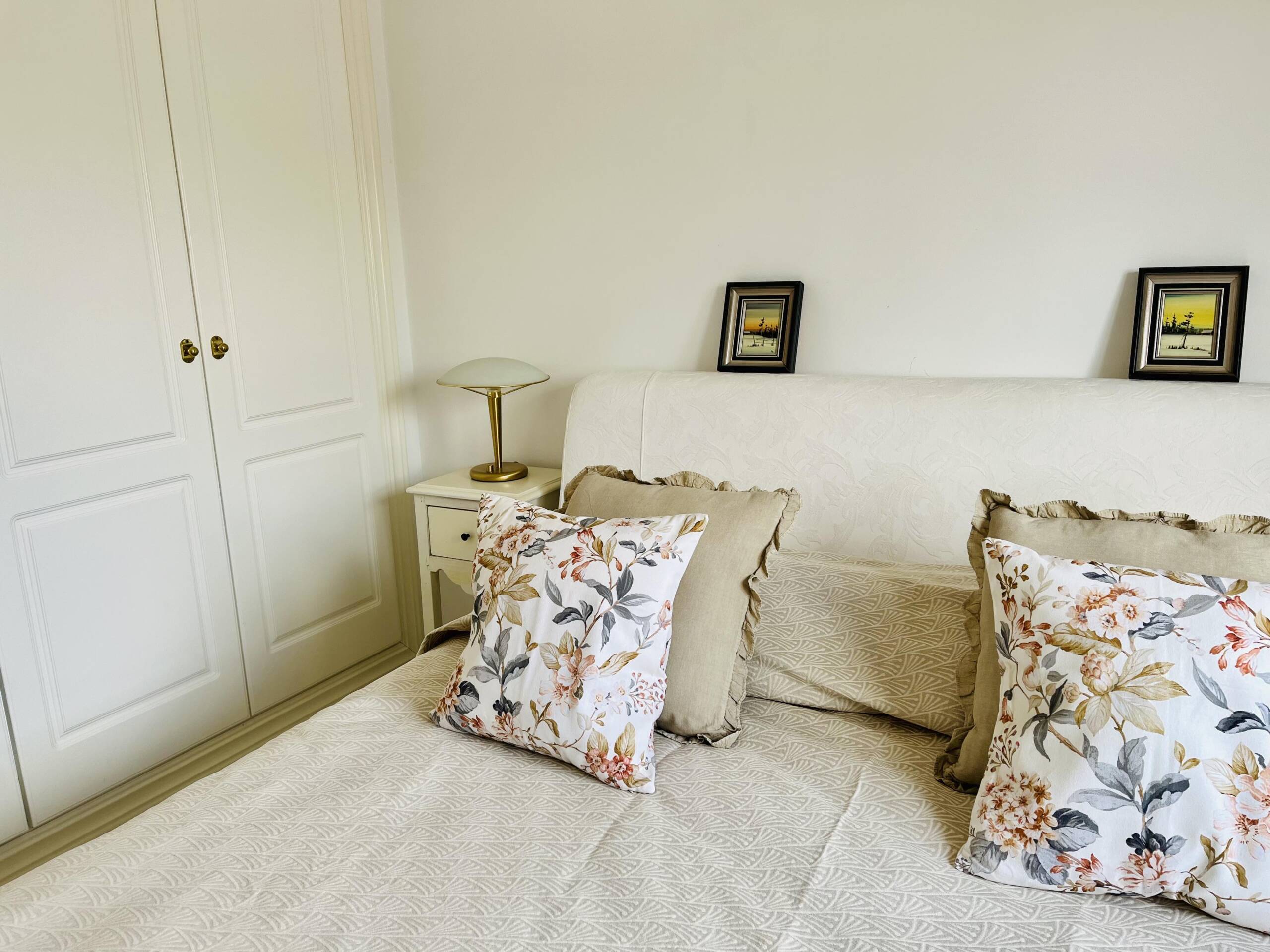 Makuuhuoneissa on molemmissa parisängyt ( 160×200 cm) ja hyvin säilytystilaa. Olohuoneessa on iso vuodesohva, johon mahtuu nukkumaan kaksi. Kahden makuuhuoneen lisäksi on kaksi tilavaa kylpyhuonetta joissa molemmissa on suihkut. Olohuone/ruokailutila, hyvin varusteltu keittiö täysin mukavuuksin, esim. astianpesukone ja pyykinpesukone, sekä mikro, kahvinkeitin, leivänpaahdin. Asunto on varusteltu kuudelle henkilölle, varusteluun kuuluu myös hiustenkuivain sekä lasten matkasänky, amme ja syöttötuoli.