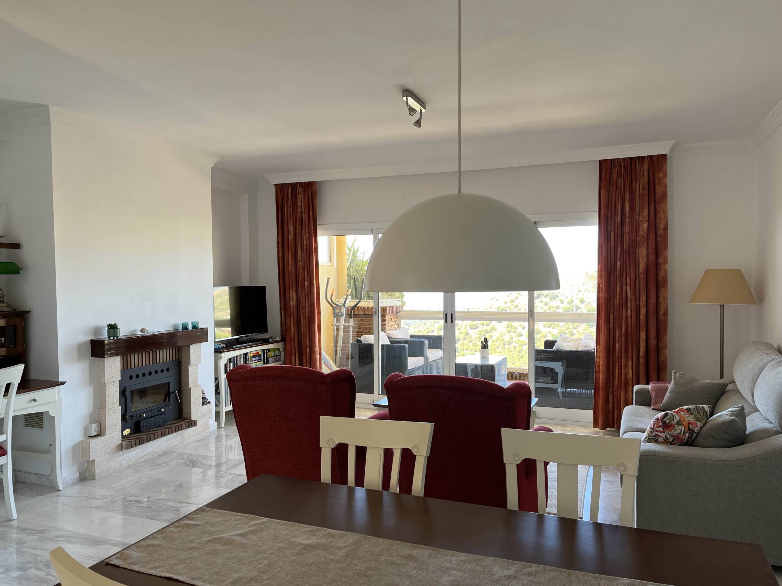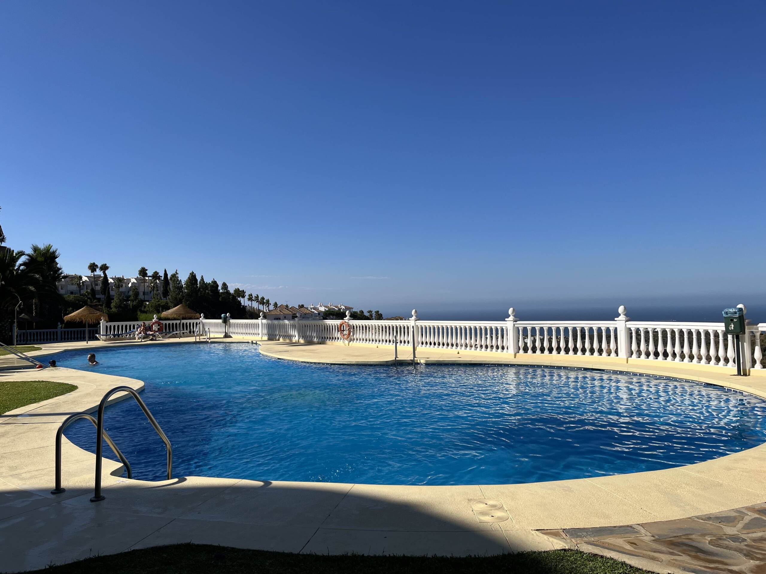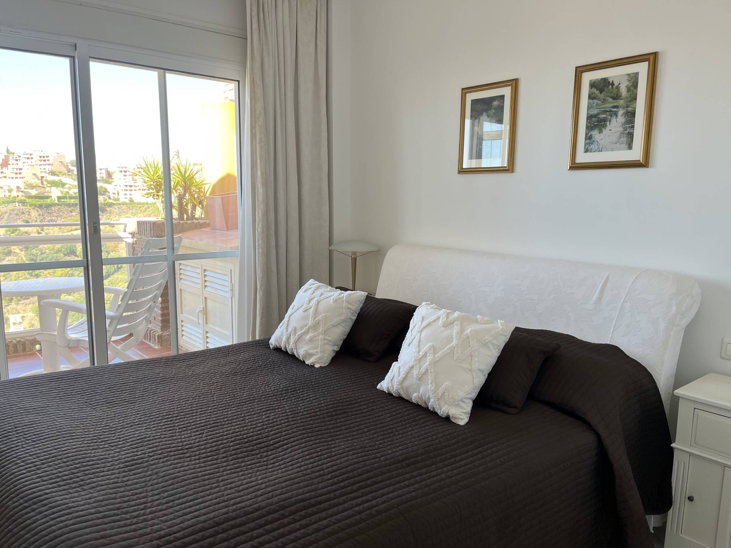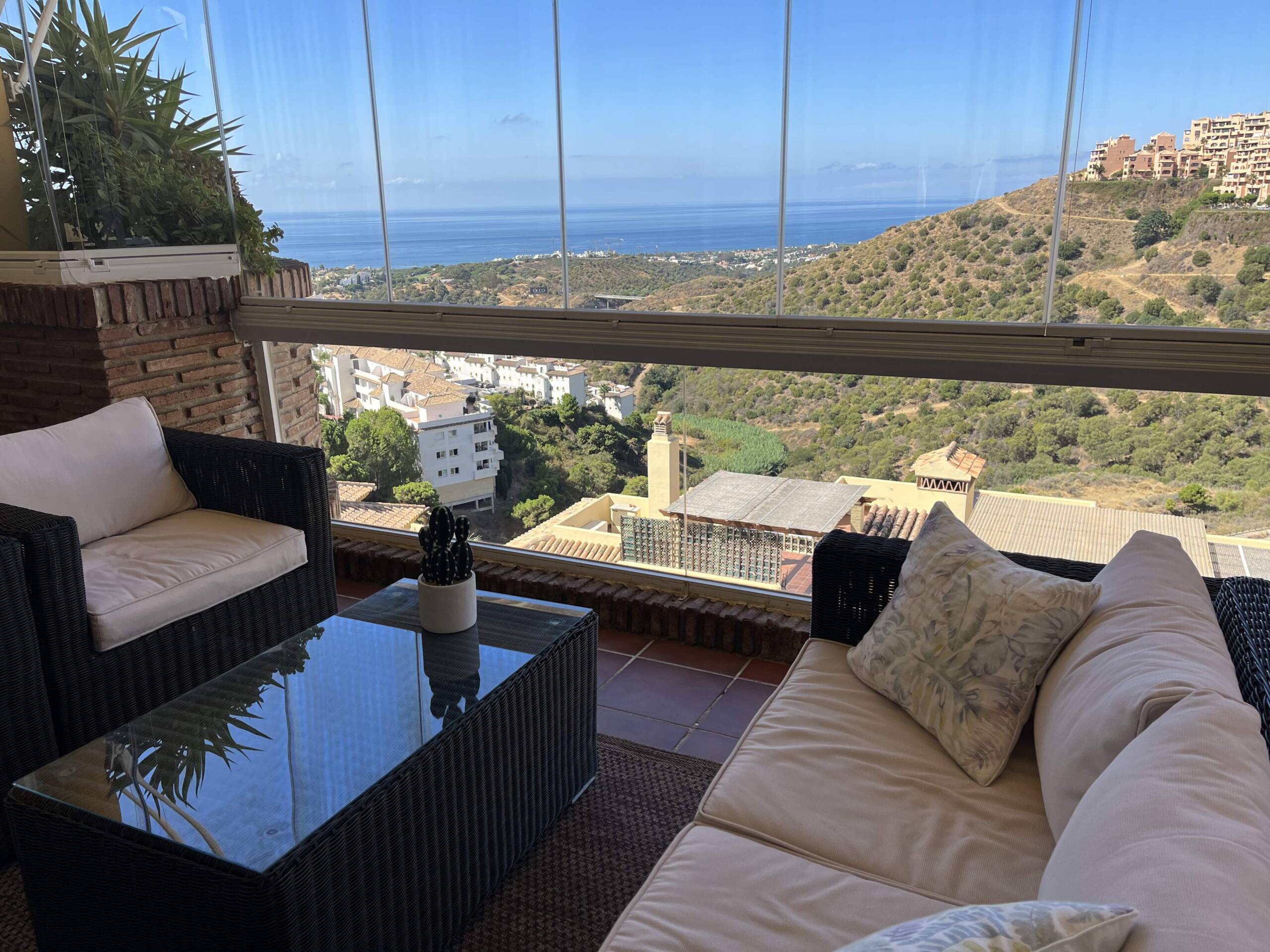 Huoliteltu kahden makuuhuoneen kattohuoneisto merinäköalalla Calahondan kukkuloilla omassa rauhassaan, lähellä luontoa, golf- ja tennis- sekä padel-kenttiä. Taloyhtiö on rauhallinen ja erityisen pidetty, varusteltu mm. kahdella erittäin siistillä uima-altaalla ja vehreillä piha-alueilla. Asunto on valoisa ja sisustettu modernisti pohjoismaiseen tyyliin.